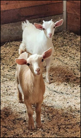 DOB: June 7, 2025 – 2 bucks 1 - White/Cream – could carry moon spot gene 1 – Brown w/heavy moon spots BOTH SOLD!