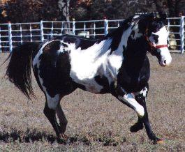 1994 Black & White Overo Stallion..16+ hands..1400lbs Magnolia stands over 16 hands; has a massive hip, front end, forearm and shoulder: his neck is long with a gorgeous head; and his black and white color pattern is striking and beautiful from any side or angle. His disposition is kind and gentle; he is quiet, good natured and a pleasure to be around. He is Skipper W, Leo And Top Deck bred. Magnolia's babies from his first foal crop exhibit this standard of quality. They are all outstanding in their conformation; most with the loud overo color pattern; from sorrel mares he throws predominantly black and white or bay and white. Breeding Fee $1,250 LFCG, TCSA For contracts, pedigrees or more information call or write: Magnolia